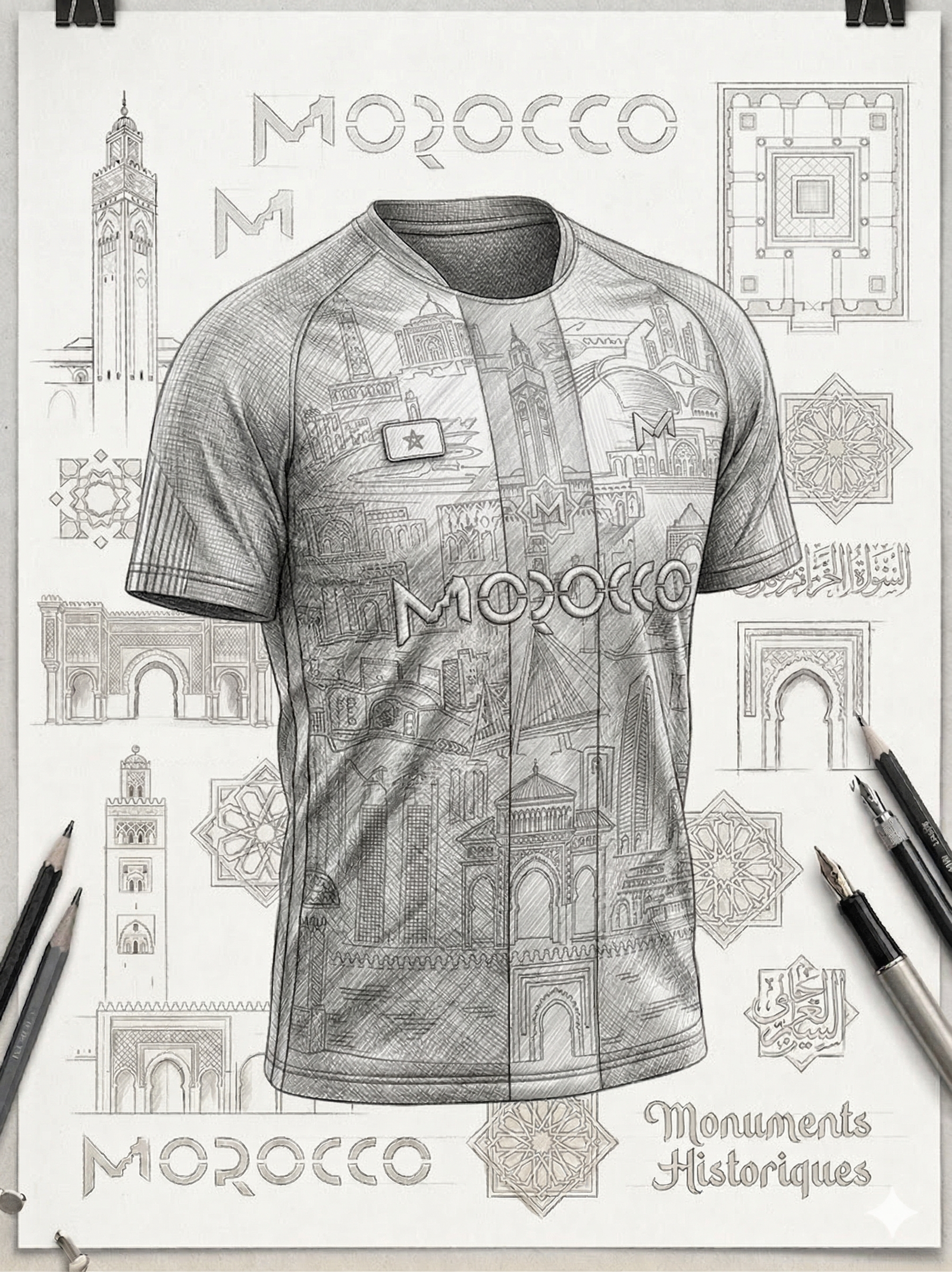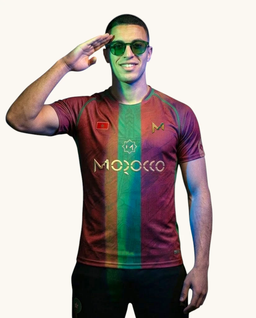 Portez l’histoire du 12 siècles de Royauté avec le Maillot Maroc Monuments, une pièce maîtresse de la Marque M. Ce maillot n’est pas seulement un vêtement de sport, c’est une prouesse technologique dédiée au patrimoine marocain.